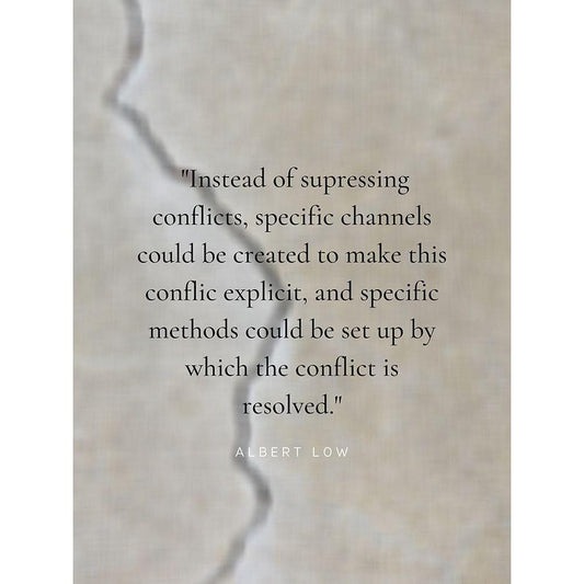 Albert Low Quote: Conflict is Resolved Black Modern Wood Framed Art Print by ArtsyQuotes