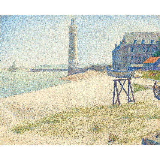 The Lighthouse at Honfleur Black Modern Wood Framed Art Print by Seurat, Georges