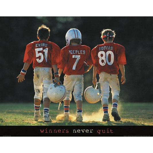 Winners Never Quit - Football Black Modern Wood Framed Art Print by Unknown