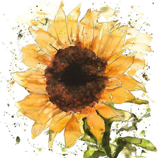 WATERCOLOR SUNFLOWER WITH PAINT SPLASH Black Modern Wood Framed Art Print by Atelier B Art Studio