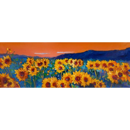 Sunset on Sunflower Fields Black Modern Wood Framed Art Print by Atelier B Art Studio