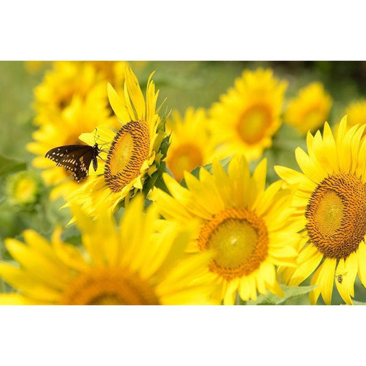 USA- Washington State- Sammamish. Zebra swallowtail butterfly on sunflower Black Modern Wood Framed Art Print by Gulin, Darrell