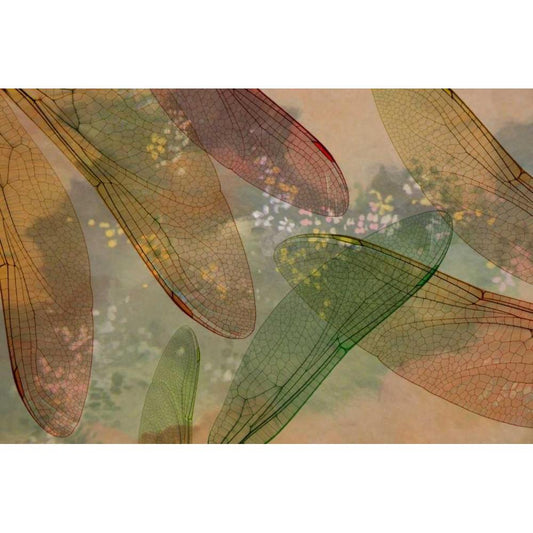 Montage abstract of dragonfly wings and flower Black Modern Wood Framed Art Print by Paulson, Don