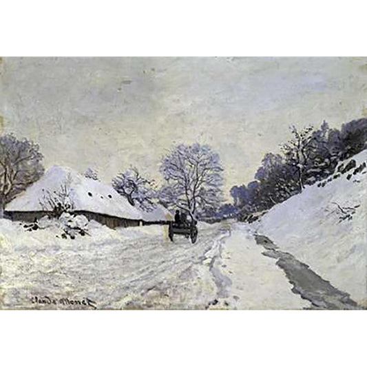 Snow-Covered Road at Honfleur Black Modern Wood Framed Art Print by Monet, Claude