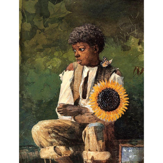 Taking Sunflower To Teacher Black Modern Wood Framed Art Print by Homer, Winslow