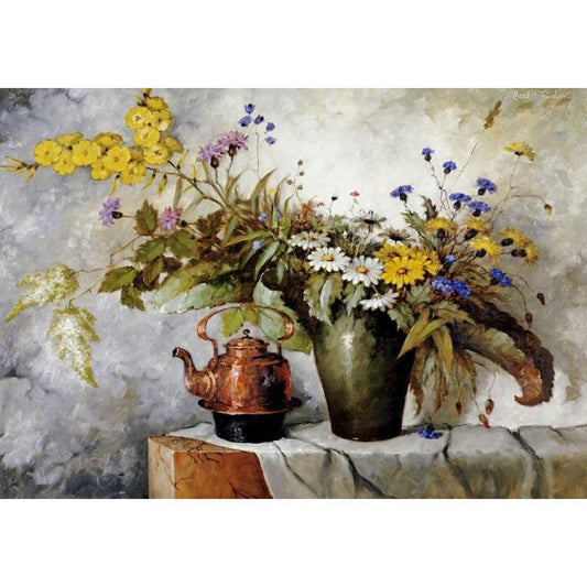Still-Life WITH SUNFLOWERS Black Modern Wood Framed Art Print by Babichev