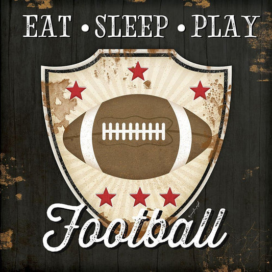 Eat, Sleep, Pray, Football Black Modern Wood Framed Art Print by Pugh, Jennifer
