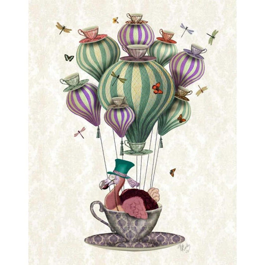Dodo Balloon with Dragonflies Black Modern Wood Framed Art Print by Fab Funky