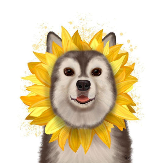 Husky Sunflower Black Modern Wood Framed Art Print by Fab Funky