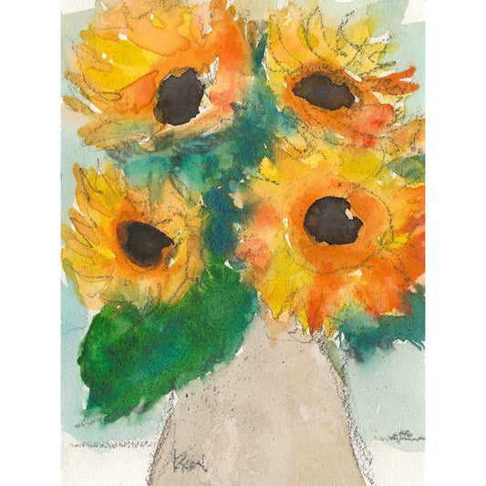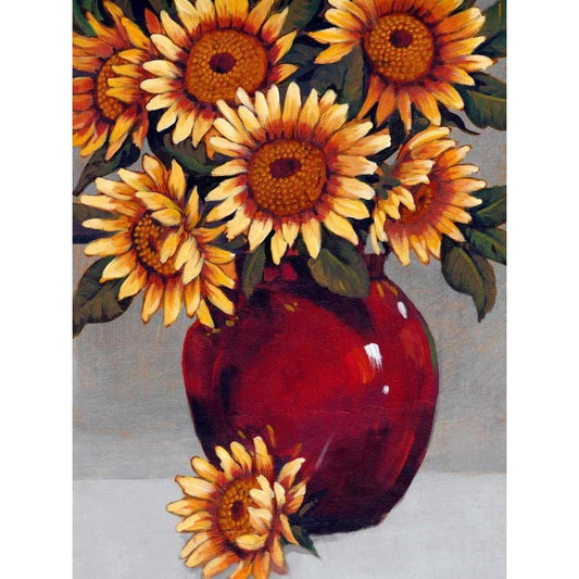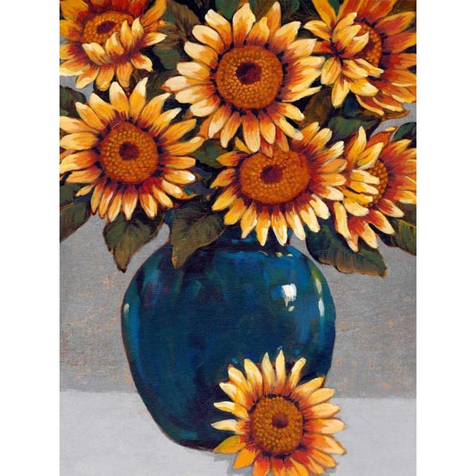 Vase of Sunflowers I Black Modern Wood Framed Art Print by OToole, Tim