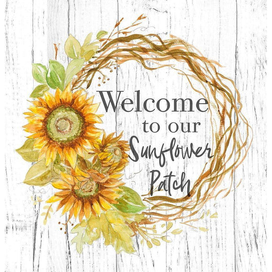 Welcome To Our Sunflower Patch Black Modern Wood Framed Art Print by Pinto, Patricia