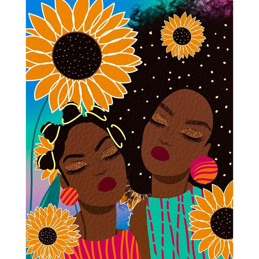 Sunflower Women Black Modern Wood Framed Art Print by Lorintheory