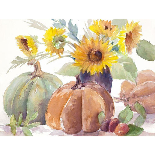 Tawny Sunflowers and Pumpkins Black Modern Wood Framed Art Print by Loreth, Lanie