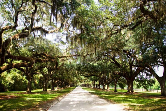 Charleston Oaks I White Modern Wood Framed Art Print with Double Matting by Hausenflock, Alan