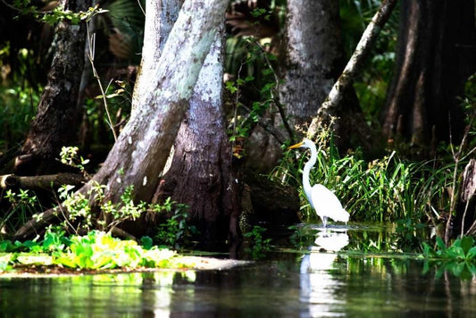 Stalking Egret White Modern Wood Framed Art Print with Double Matting by Hausenflock, Alan