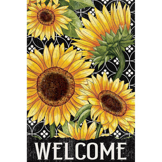 Welcome Sunflower Black Modern Wood Framed Art Print by Allen, Kimberly