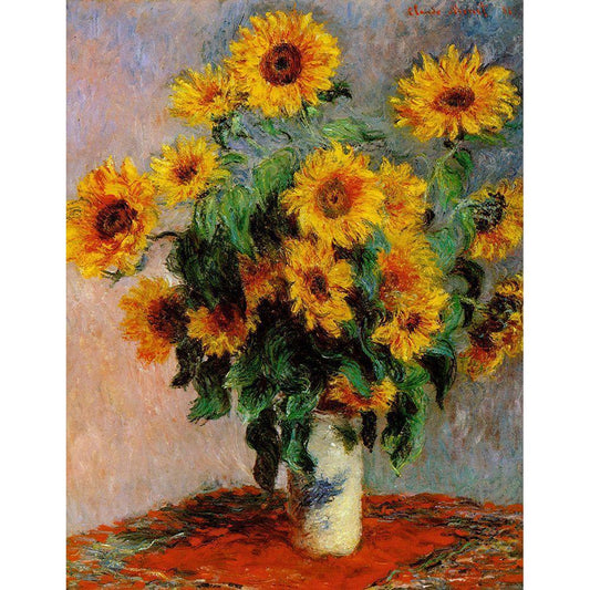 Monet-Bouquet of Sunflowers Black Modern Wood Framed Art Print by Vintage Apple Collection