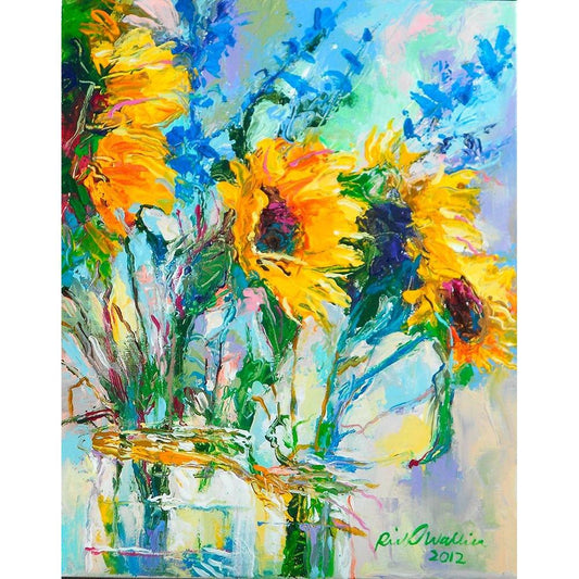 Sunflowers In Blue Vase Black Modern Wood Framed Art Print by Wallich, Richard