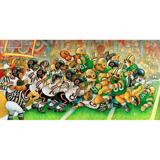 Football Dogs Black Modern Wood Framed Art Print by Bell, Bill