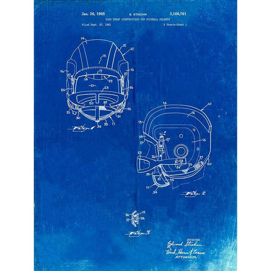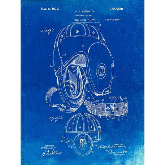 PP73-Faded Blueprint Football Leather Helmet 1927 Patent Poster Black Modern Wood Framed Art Print by Borders, Cole