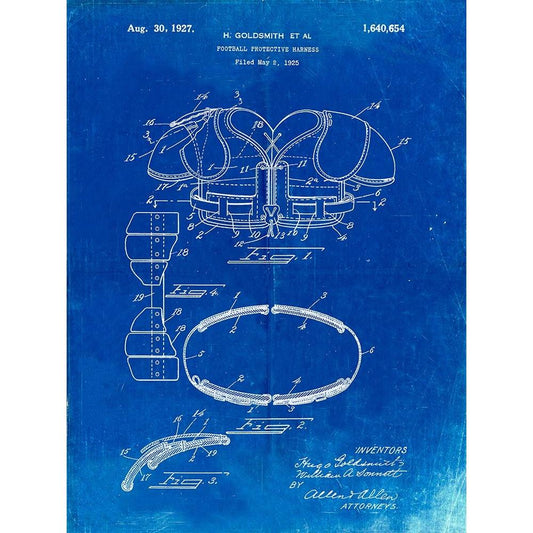 PP219-Faded Blueprint Football Shoulder Pads 1925 Patent Poster Black Modern Wood Framed Art Print by Borders, Cole