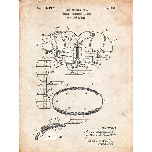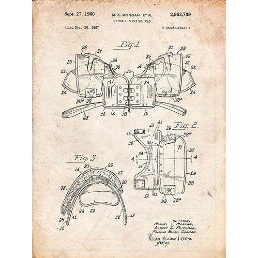 PP504-Vintage Parchment Vintage Football Shoulder Pads Patent Poster Black Modern Wood Framed Art Print by Borders, Cole