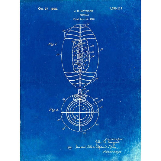 PP379-Faded Blueprint Football Game Ball 1925 Patent Poster Black Modern Wood Framed Art Print by Borders, Cole
