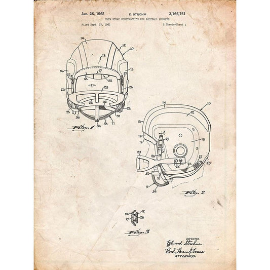 PP218-Vintage Parchment Football Helmet 1925 Patent Poster Black Modern Wood Framed Art Print by Borders, Cole