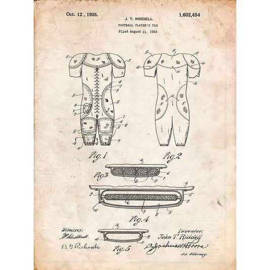 PP690-Vintage Parchment Ridell Football Pads 1926 Patent Poster Black Modern Wood Framed Art Print by Borders, Cole