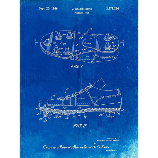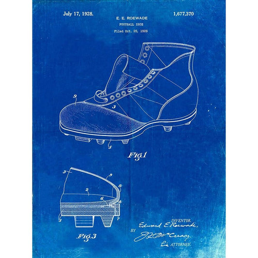 PP823-Faded Blueprint Football Cleat 1928 Patent Poster Black Modern Wood Framed Art Print by Borders, Cole