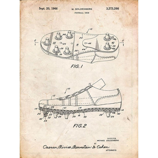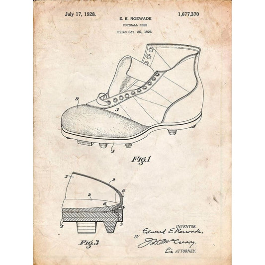 PP823-Vintage Parchment Football Cleat 1928 Patent Poster Black Modern Wood Framed Art Print by Borders, Cole