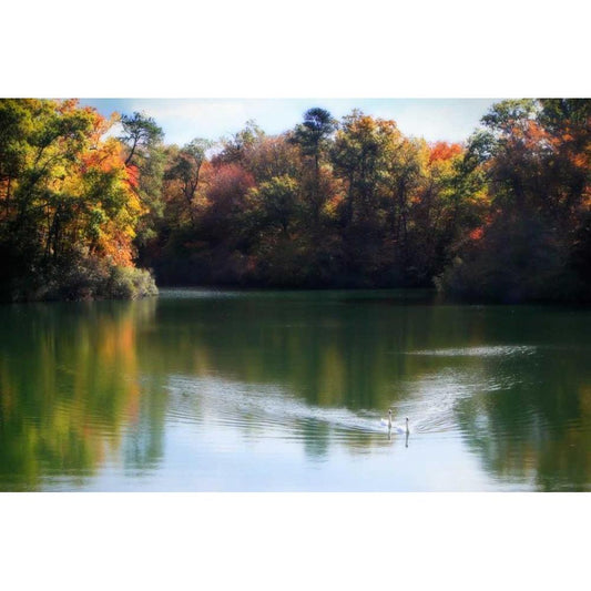 Swans on the Lake II Black Modern Wood Framed Art Print by Hausenflock, Alan