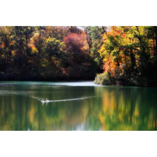 Swans on the Lake I Black Modern Wood Framed Art Print by Hausenflock, Alan