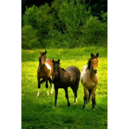 The Horses Three II Black Modern Wood Framed Art Print by Hausenflock, Alan