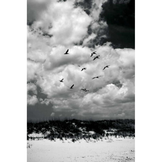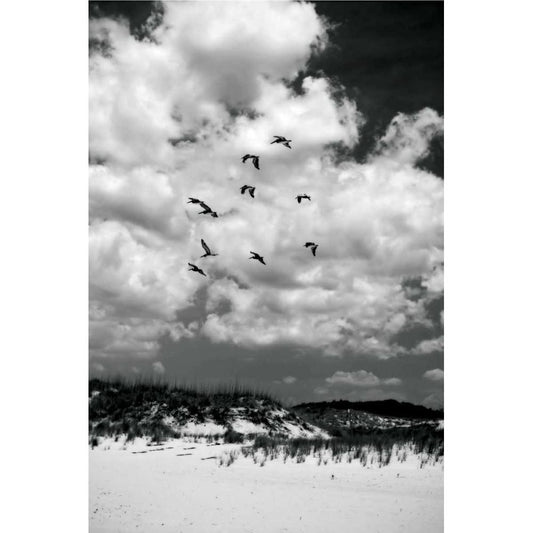 Pelicans over Dunes V Black Modern Wood Framed Art Print by Hausenflock, Alan