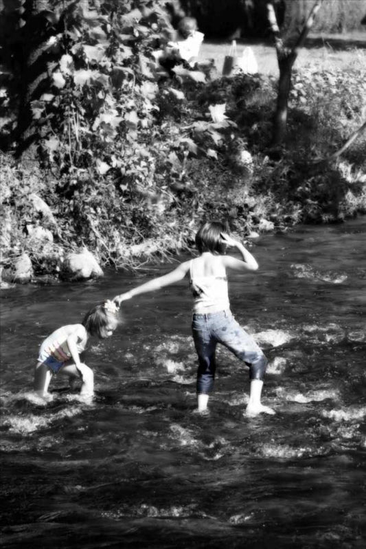 Children at Play I White Modern Wood Framed Art Print with Double Matting by Hausenflock, Alan