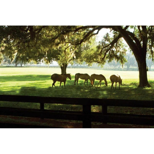 Horses in the Sunrise I Black Modern Wood Framed Art Print by Hausenflock, Alan