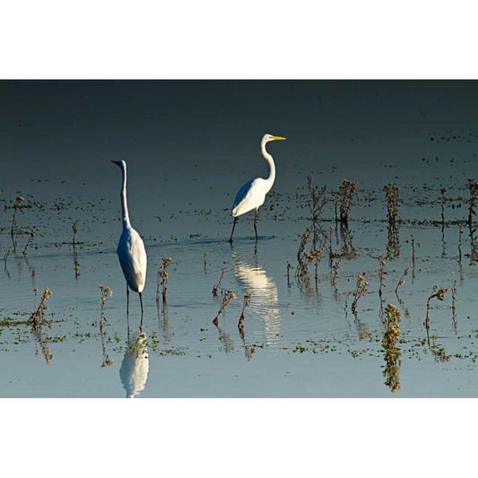 Early Morning Egrets I Black Modern Wood Framed Art Print by Hausenflock, Alan