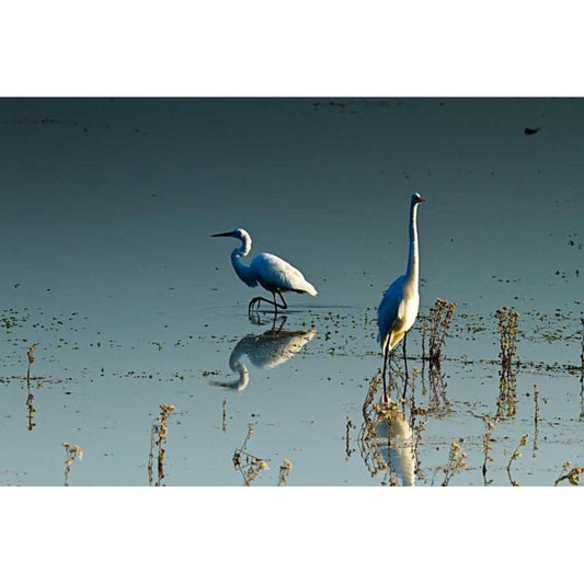 Early Morning Egrets II Black Modern Wood Framed Art Print by Hausenflock, Alan