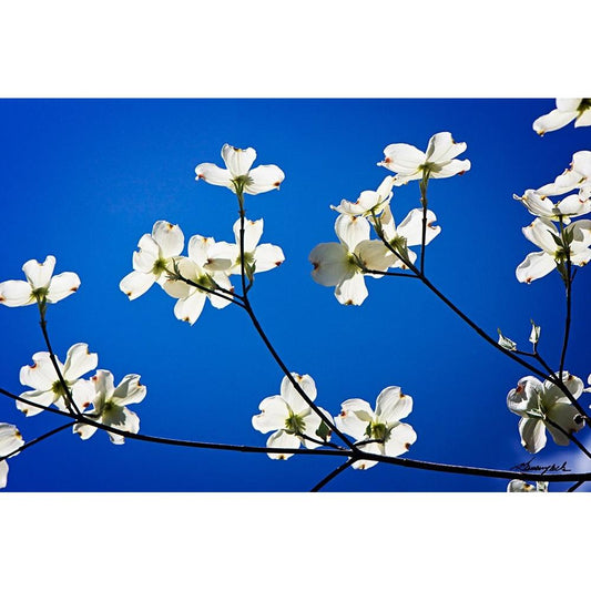 Dogwood on Blue II Black Modern Wood Framed Art Print by Hausenflock, Alan