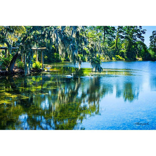 Swans in the Afternoon Black Modern Wood Framed Art Print by Hausenflock, Alan