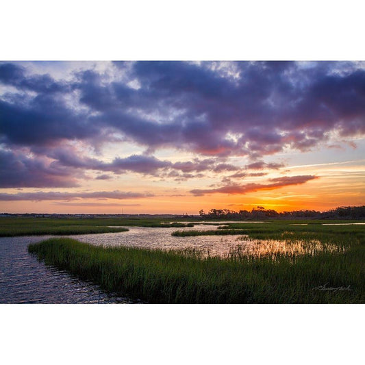 Sunset in the Marsh Black Modern Wood Framed Art Print by Hausenflock, Alan
