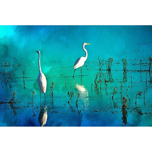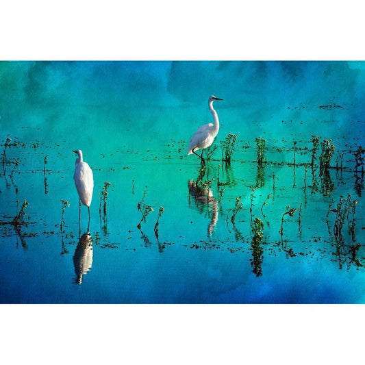 Wading Herons II Black Modern Wood Framed Art Print by Hausenflock, Alan