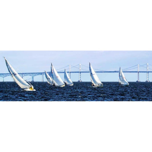 Close Hauled Flotilla II Black Modern Wood Framed Art Print by Hausenflock, Alan