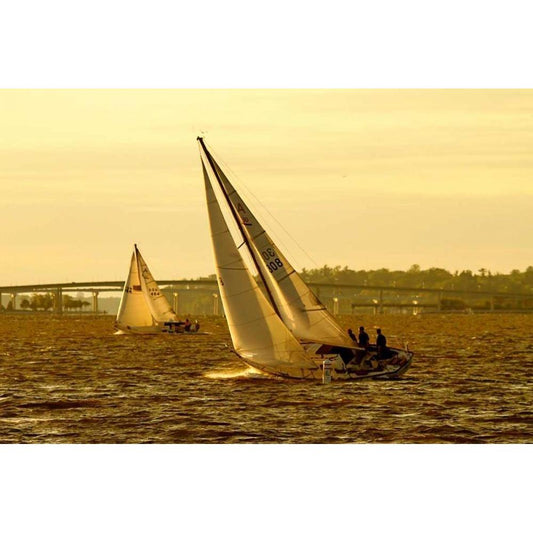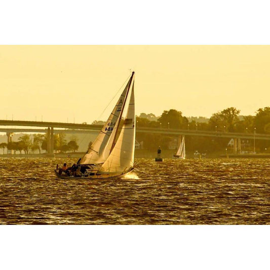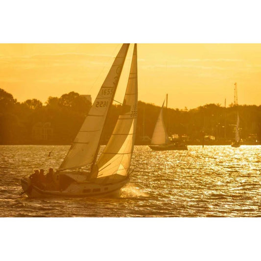 Sailing at Dusk I Black Modern Wood Framed Art Print by Hausenflock, Alan