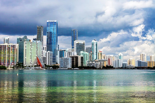 Downtown Miami White Modern Wood Framed Art Print with Double Matting by Hausenflock, Alan