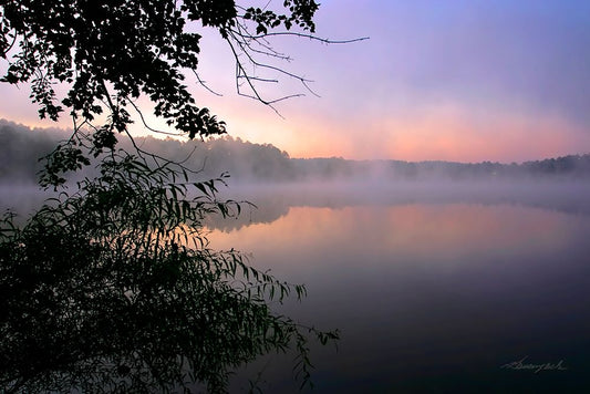 Shelley Lake Fog White Modern Wood Framed Art Print with Double Matting by Hausenflock, Alan