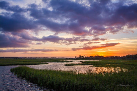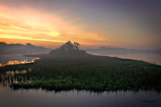 Sunset in the Marsh White Modern Wood Framed Art Print with Double Matting by Hausenflock, Alan
