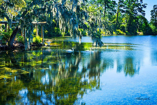Swans in the Afternoon White Modern Wood Framed Art Print with Double Matting by Hausenflock, Alan