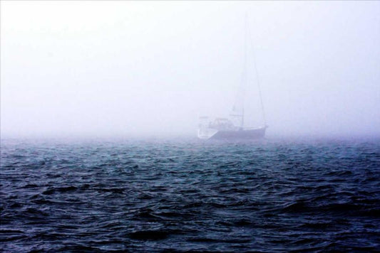Fog on the Bay I White Modern Wood Framed Art Print with Double Matting by Hausenflock, Alan